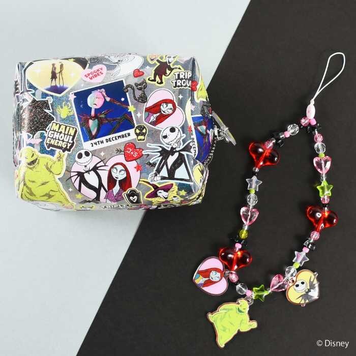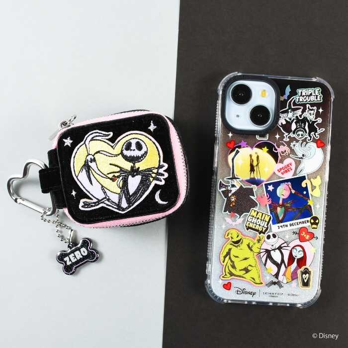 ハロウィン・タウンの住人たちをグリッターでデザイン。ガジェット収納にもおすすめのコンパクトサイズ。