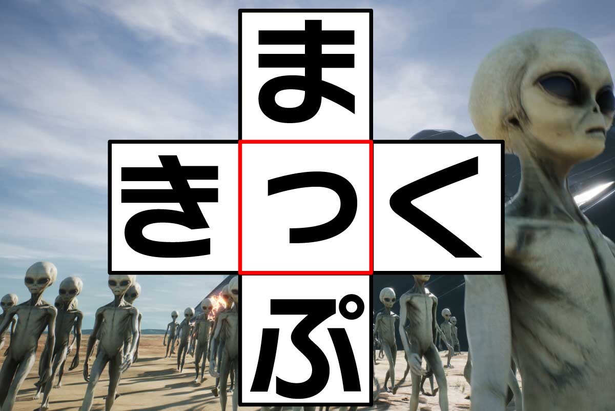 【問題】空欄に入るひらがなは? 【ヒント】タテ:「地図」を英語にすると? ヨコ:蹴ること。