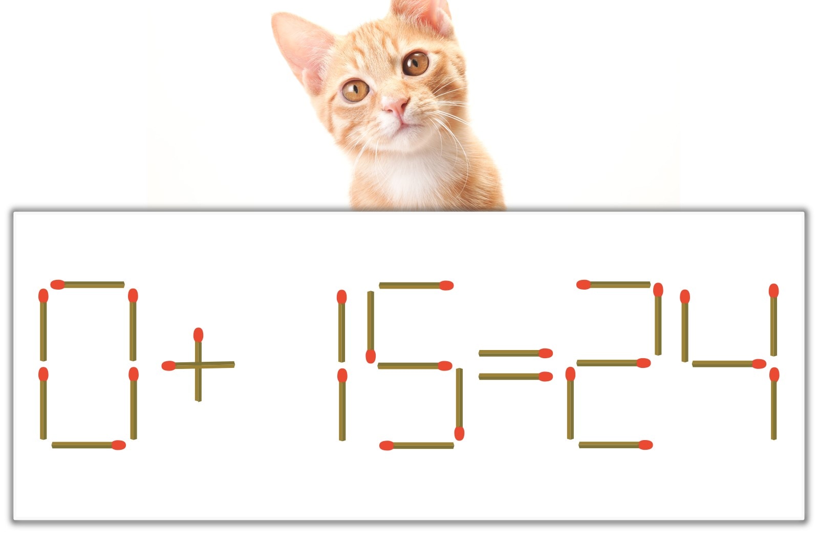 「0」のマッチ棒を1本、右上にスライドさせて「9」を作り、「9+15=24」にする。※解答は複数ある場合があります。