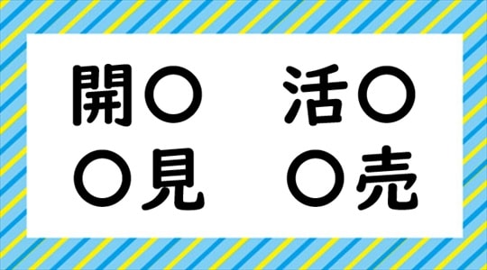 【答】 発それぞれ「開発」「活発」「発見」「発売」となります。