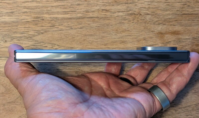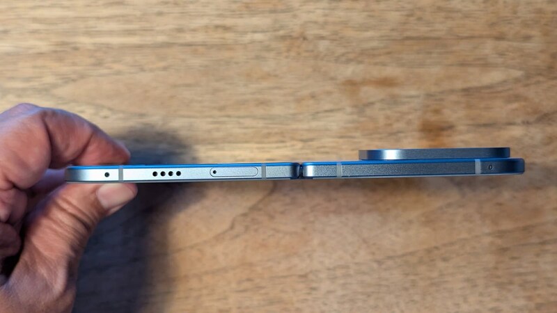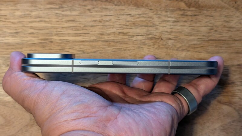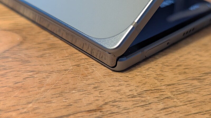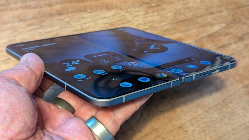 前モデルと比べて2倍の耐久性を持つギアレスヒンジの採用により、Foldシリーズで初めてIP68準拠の防塵防水性能を備え、耐落下性能も向上。任意の角度に開いて固定でき、閉じる際にはパタっと心地よい感触で隙間なく閉じることができます。ディスプレイから見て左側面に指紋認証に対応した電源ボタンと音量調節ボタン、底面には画面のミラーリング出力が可能なDP Alt(Display Port Alternate mode)対応のUSB Type-Cポートを搭載します。