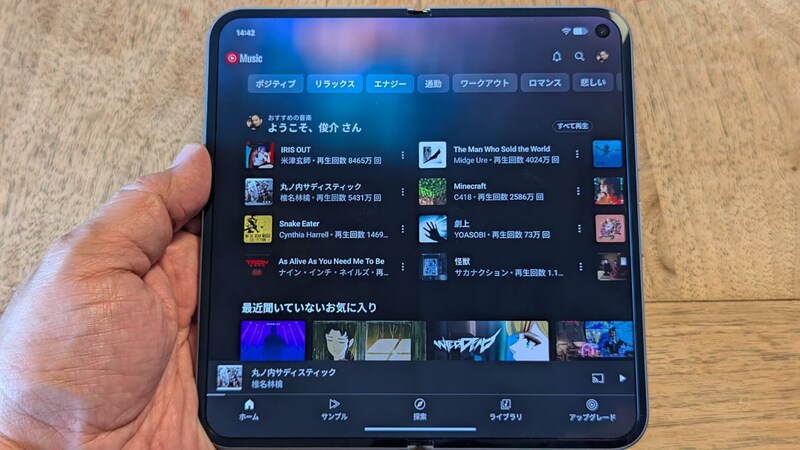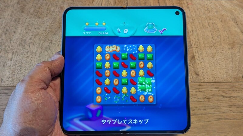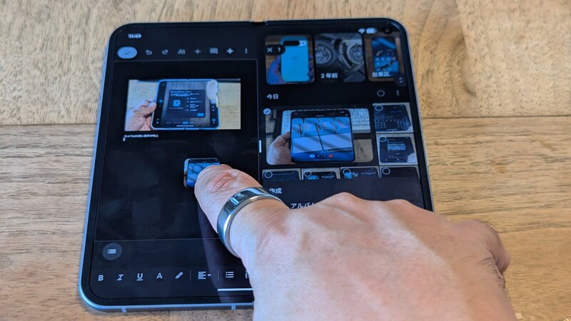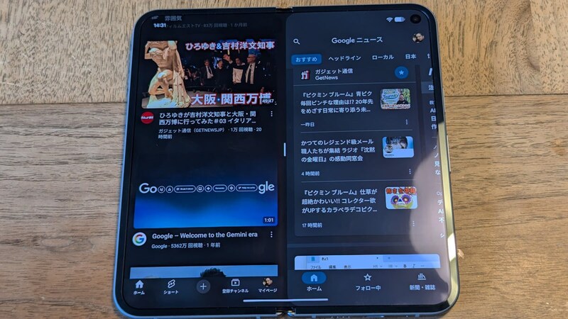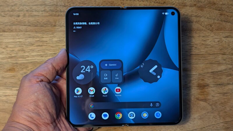 大画面に最適化されたアプリでは、フルスクリーンでリッチな体験が可能。アプリ側の最適化も進んでいるようで、たとえばGmailアプリは開いた状態で90°回転させてもタブレット同様の2カラム表示をキープしてくれるようになりました。