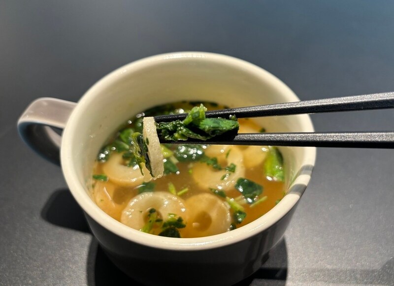 お湯を注ぐだけの手軽さはそのままに、だしの旨みを最大限に引き出すために、独自のフリーズドライ技術を使っているんだとか。「インスタントの常識が変わるかも……」と、期待と疑いが半々のまま、いざ実食です。