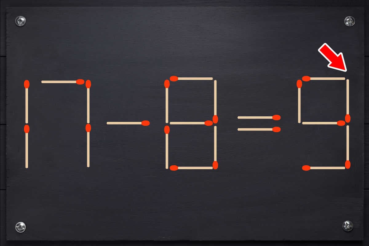 「+」の横マッチ棒を1本、「5」に移動させて「9」を作る。