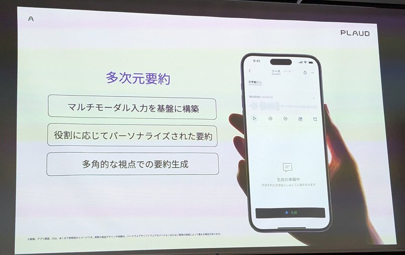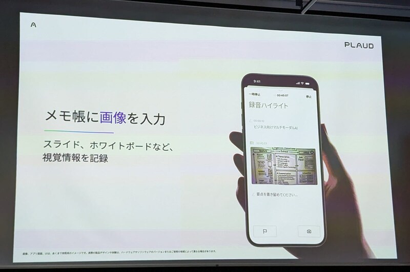 AI議事録ソリューション「Plaud Intelligence」は、メモに従来の音声入力だけでなく、録音中にスマホで撮影した写真を入力したり、その場で思いついたアイデアなどをテキストで入力できるマルチモーダルな入力に対応。