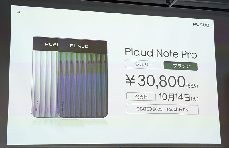 Plaud Note Proの価格は3万800円(税込)。10月14日に発売し、同日から幕張メッセで開催される展示会「CEATEC 2025」でタッチ&トライの機会を提供します。参加を予定している人はいち早く実機をチェックしてみてはいかがでしょうか。ちなみに、従来モデルのPlaud NoteはAmazonの「プライム感謝祭」で20%OFFの2万2000円で販売されています。