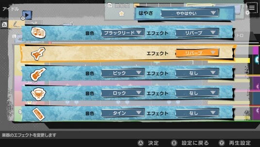 選ばなかった楽器はCPUが担当し、演奏終了後に自分のリプレイデータを保存しておけば、そのデータを使ってCPUが演奏したパートを自分でプレイし直すことも可能です。