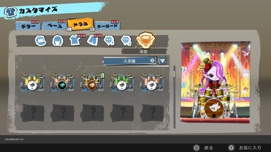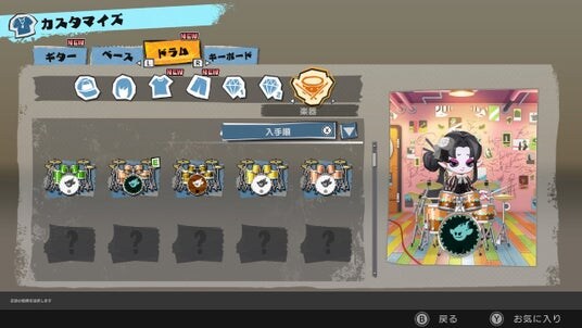 ▲バンドメンバーのカスタマイズ画面(ドラム)