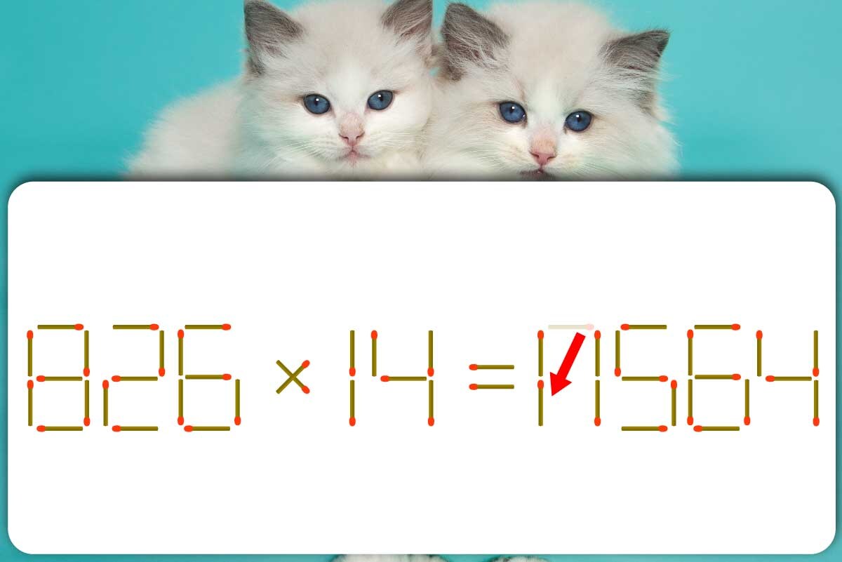 動かすのは「7」の真ん中上の一本。縦に向きを変えて、そのまま右下に持っていくと「7」が「11」に変化! すると「826×14=11564」となり、正しい式になりました! ※解答は複数ある場合があります。