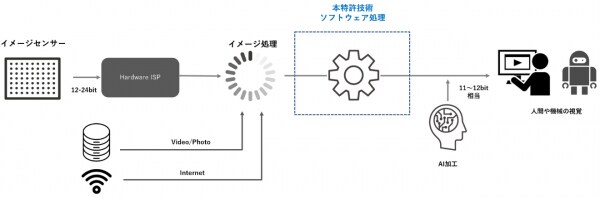 本特許技術は、汎用的なソフトウェアとして、スマートフォン、市販の安価なWebカメラ、流通済のデバイス、半導体及びディスプレイ等において、効率的にデータの視覚向上ができるように意図した、全方位対応可能なクロスプラットフォーム*2としての利用を前提としています。