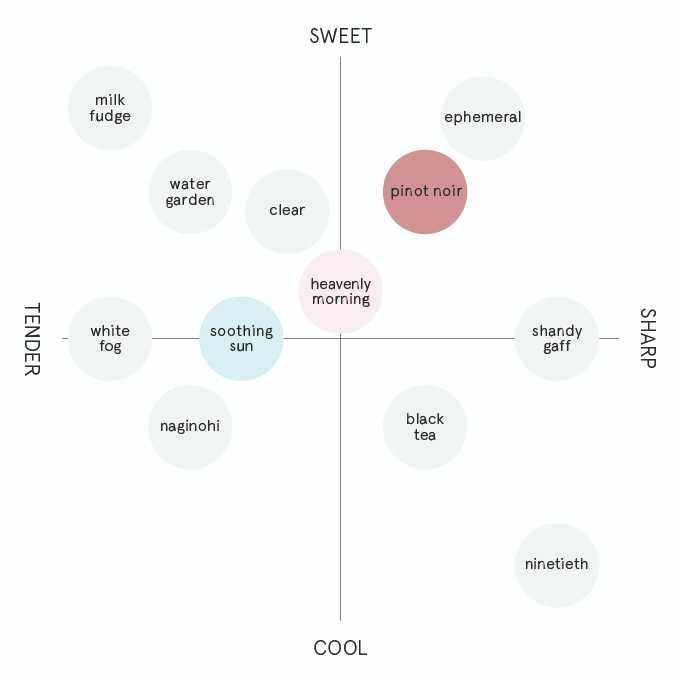 ピノノワールは、レッドワインを思わせる華やかで奥深い香り。クランベリーやヴァイオレットが織りなすフルーティーフローラルノートで、感情を解き放つような魅力を放ちます。
