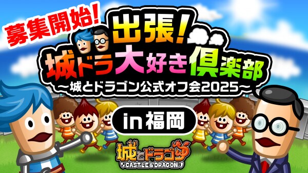 第5弾は福岡県・博多駅付近の会場にて開催!ただいま『出張!城ドラ大好き倶楽部~城とドラゴン公式オフ会2025~』詳細ページにて参加者募集中です。奮ってご応募ください!