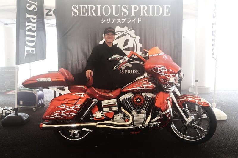 2025年10月9日 やべぇカスタムが「アメフェス」に大集結!! 個性的でド派手なハーレーを厳選して紹介! Dig-it もうダイナには見えない豪華仕様 Atsushi Toriyamaさん/2015 FLD スイッチバックをベースに「プライズバイクサロン」がサドルマン製のカウルやアレンネス製のツアーパックでツアラー化。コルビン製のシートやコルドバ製18インチハンドル、バッサーニ製2in1マフラー、圧巻はオレンジにシルバーのトライバルペイントだ。 < 1 2 3
