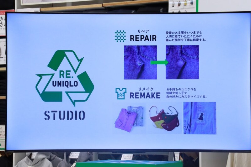 ユニクロでは循環型社会を目指す取り組み「RE.UNIQLO」を進めており、愛着のある服を大切に着続けるためのリペア、新たなアイテムへとリメイクを行うことができる「RE.UNIQLO STUDIO」というサービスを展開中。