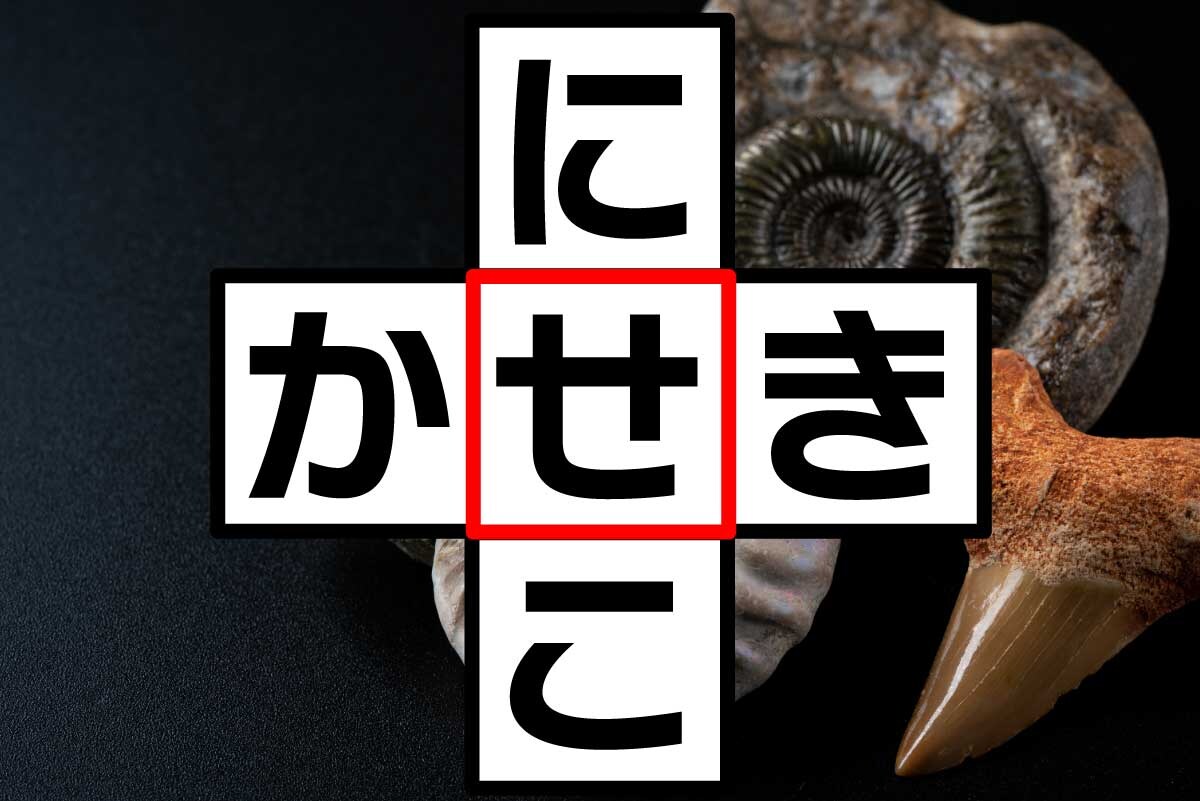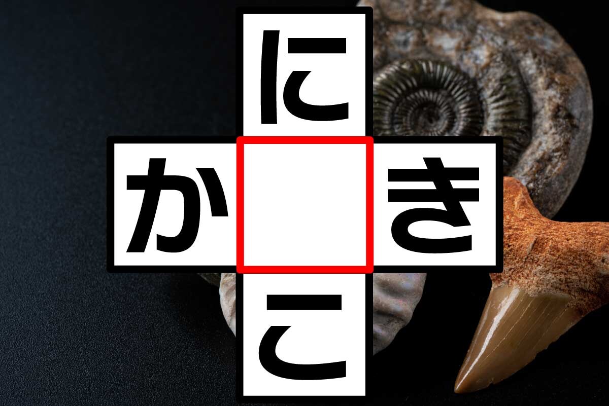 【問題】空欄に入るひらがなは? 【ヒント】タテ:北海道虻田郡にある町。「パウダースノー」が有名。ヨコ:昔の生き物の遺骸や痕跡が、地層に保存されたもの。「アンモナイト」や「鮫の歯」が有名!