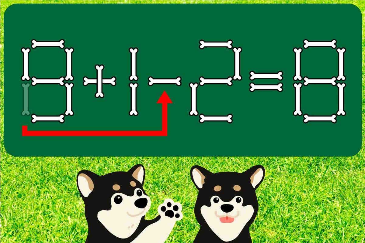 「8」の骨1本で「-」を作り、「12」の「1」と「2」の間に移動させる。
