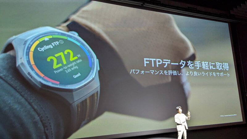 1時間維持できる最大平均パワーの指標となるFTP(Functional Threshold Power)の測定、転倒検知と緊急通報の機能にも対応します。