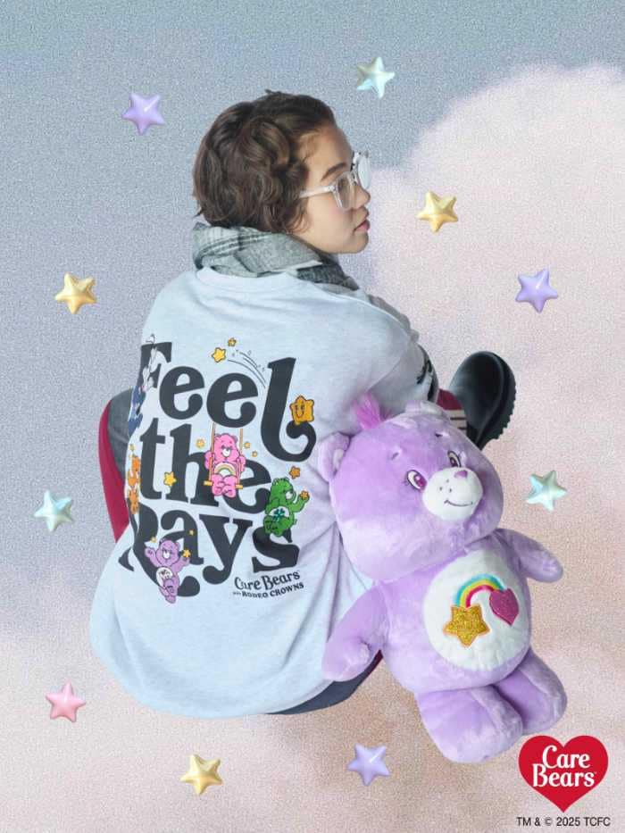 RODEO CROWNS WIDE BOWLが、人気キャラクターCare Bears™とコラボレーション。5色のケアベアアートを取り入れ、ジャガードニットやスウェット、ふわふわ素材の小物まで展開しています。