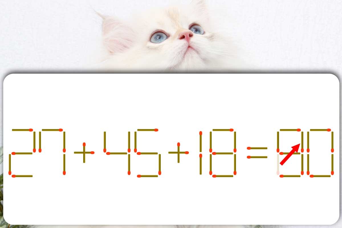 「6」の左下にあるマッチを縦のまま、右上に動かすと「9」になり、正しく成立する式になりました。※解答は複数ある場合があります。