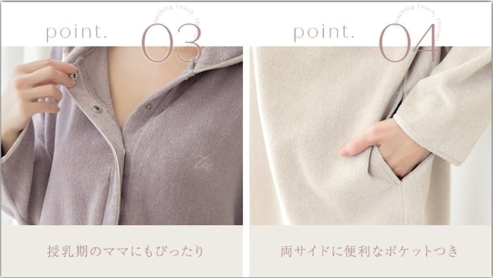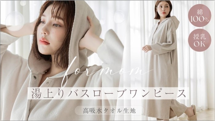『tu-hacci』の《湯上りバスローブワンピース》は、忙しいママの“お風呂上がりの困った”を解消するアイテム。