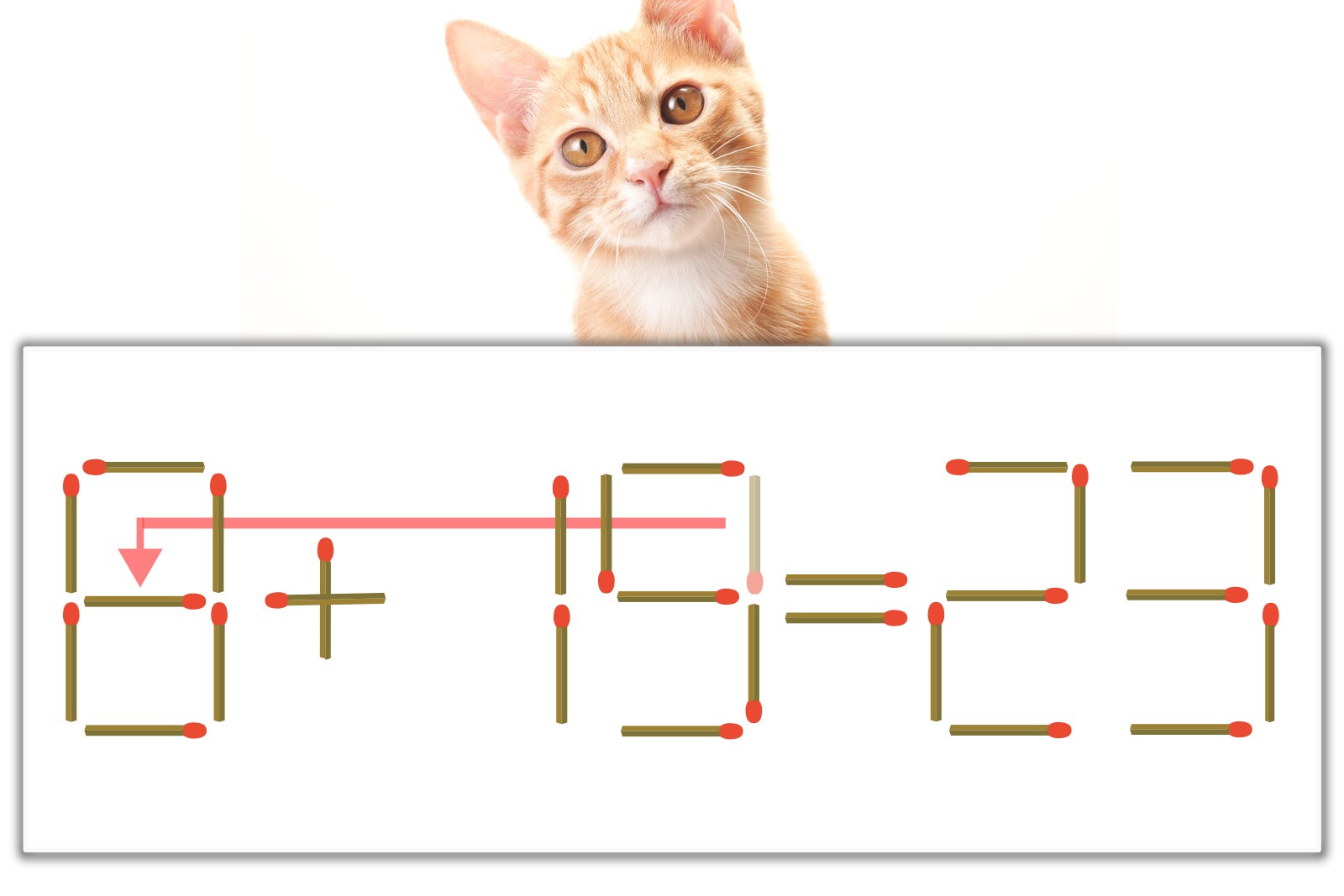 【問題】マッチ棒を1本動かして式を正しくしてください。