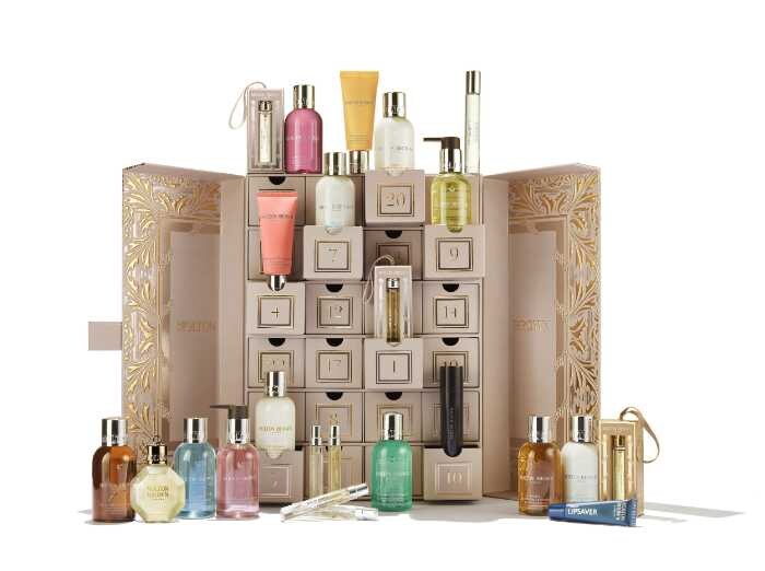 モルトンブラウンの象徴ともいえる「アドベントカレンダー」(48,400円)は、毎日ひとつずつ引き出しを開けるたびに新しい香りが広がる特別な体験を届けます。