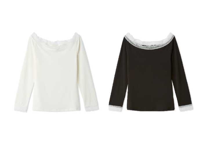 オフショルダー(7,920円税込)やクルーネック(7,480円税込)、ショートパンツ(7,040円税込)の3型が登場。