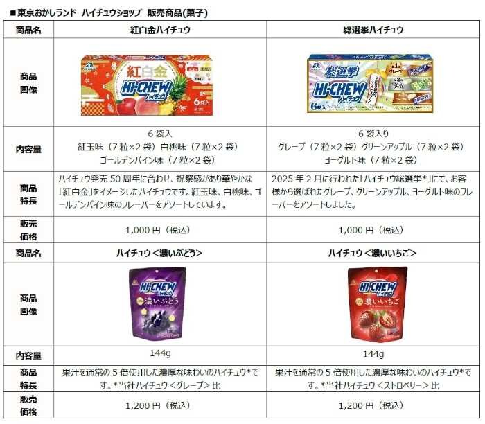 前回好評だったオリジナル商品に加え、新作「紅白金ハイチュウ」「総選挙ハイチュウ」など、ここでしか手に入らない限定アイテムがラインアップされています。