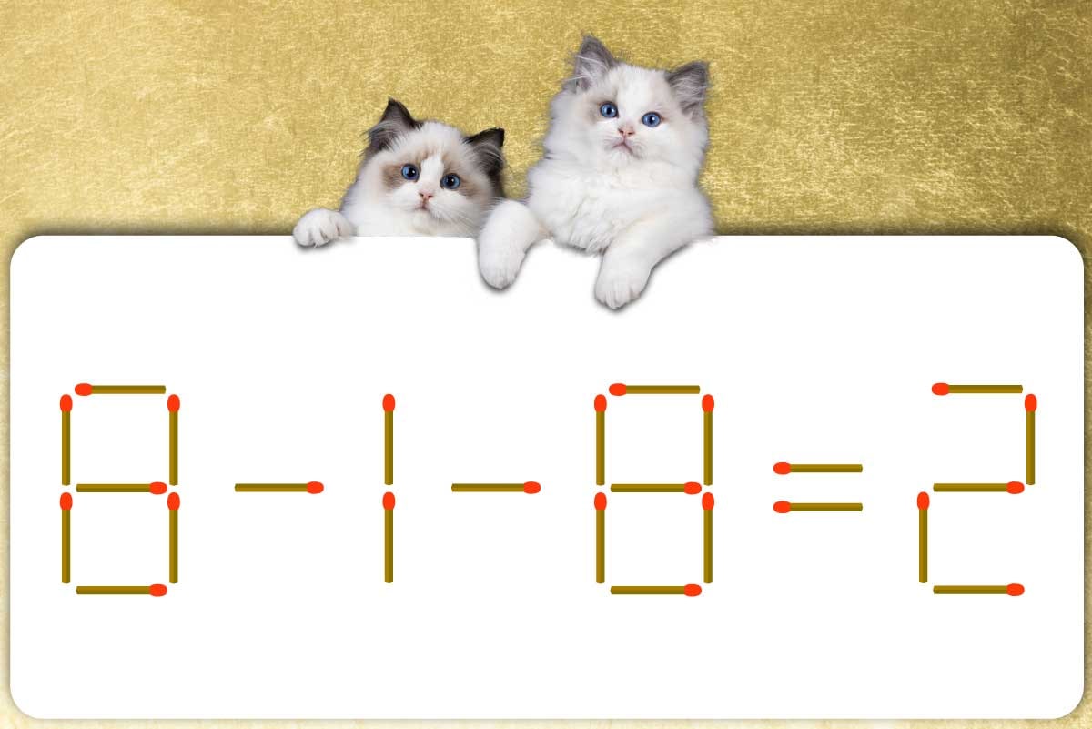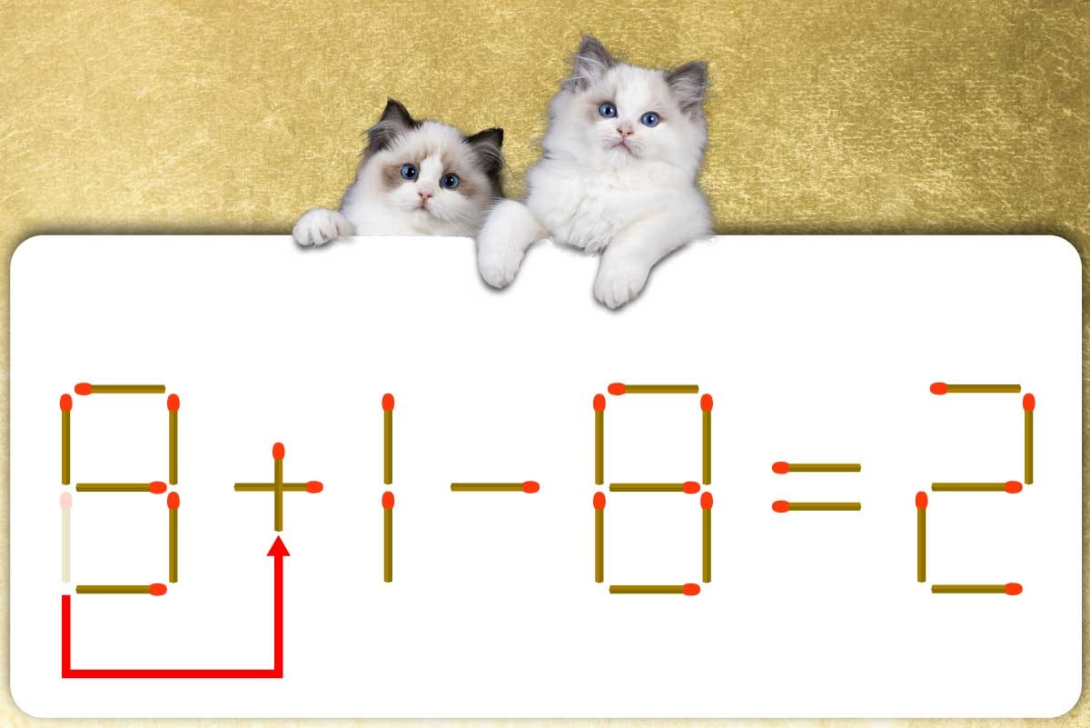 「8」のマッチ棒を1本、「-」に移動させて「+」を作り、「9+1-8=2」にする。※解答は複数ある場合があります。