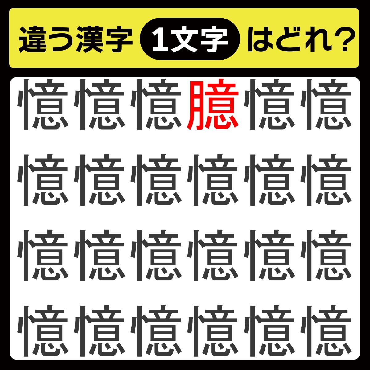 毎日配信中「毎日脳トレ」の時間です! 本日のクイズは「漢字のまちがい探し」に挑戦♪ 同じ漢字が並んでいるように見えますが、実は1つだけ違う漢字が……。よ~く探してみてください!