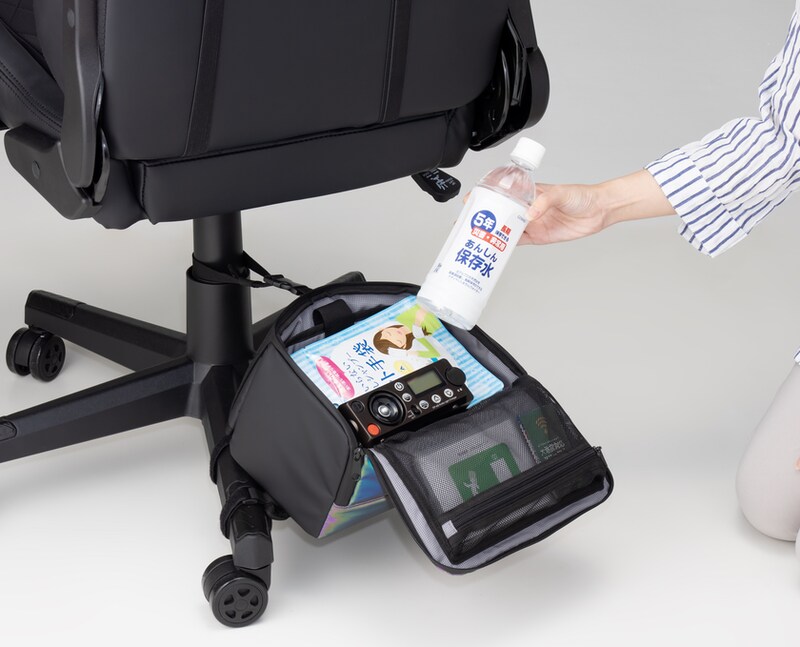 そこで新発想の『ゲーミング防災セット』は、ゲーミングチェアやデスクチェアの脚部、クローゼットの隙間といった、これまで使われていなかった「デッドスペース」のサイズを基準に設計されました。