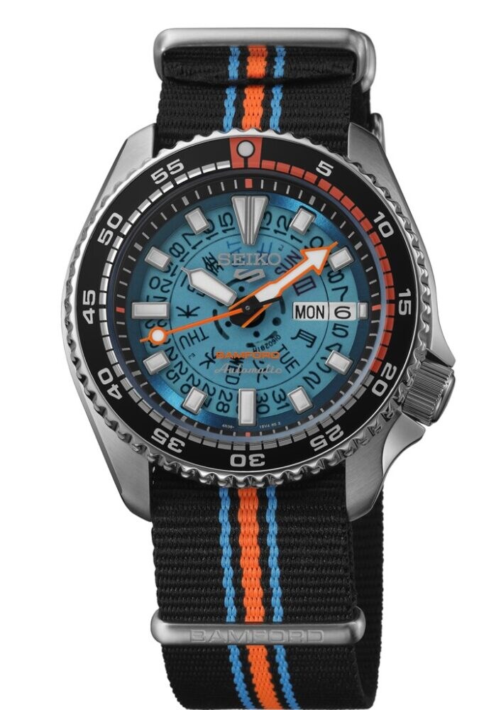 セイコーウオッチ株式会社は、「セイコー 5スポーツ」から、ロンドンを拠点とする高級カスタムウオッチブランドBAMFORD WATCH DEPARTMENT(バンフォード・ウオッチ・デパートメント)とコラボレーションした数量限定モデルを10月10日(金)より発売する。希望小売価格は63,800円(税込)、全世界2,025本の数量限定である。