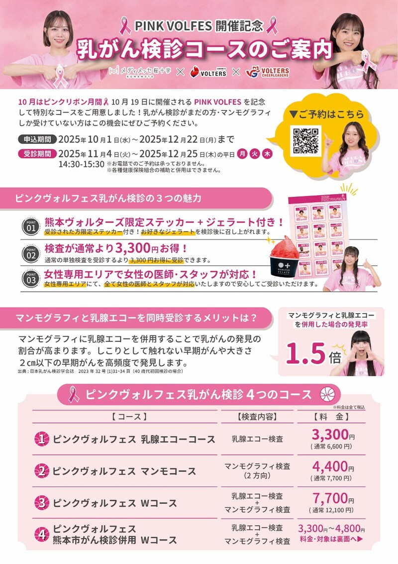 「PINK VOLFES開催記念」特別な乳がん検診コースを12月25日まで提供