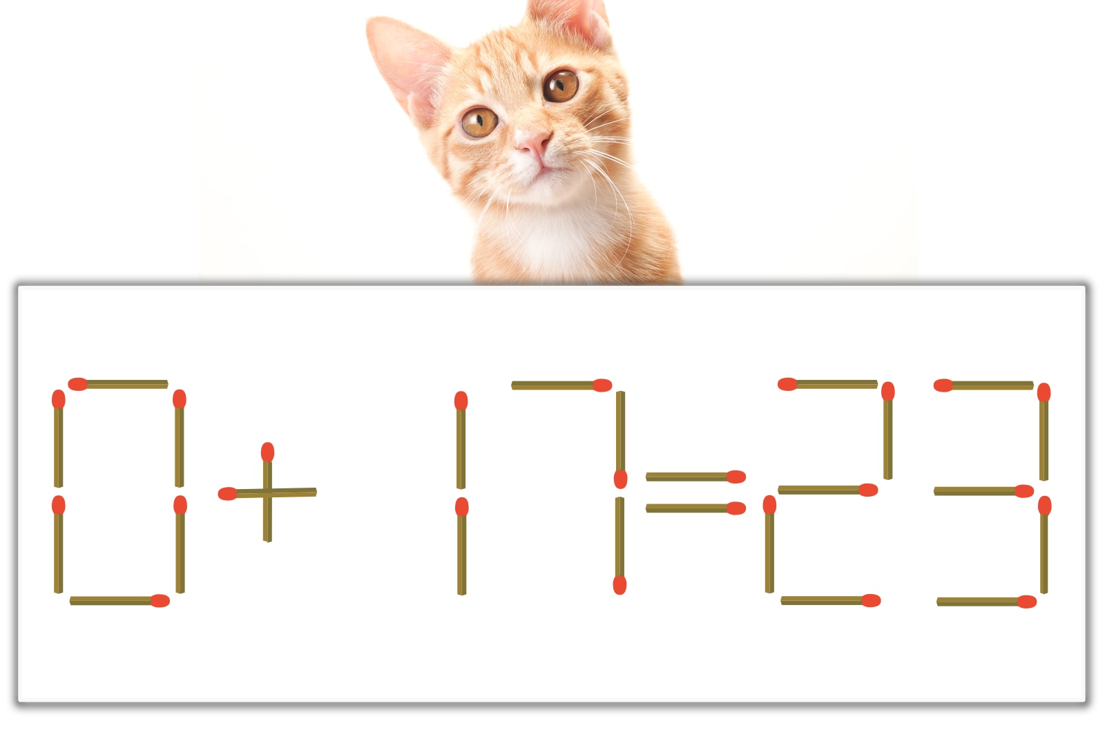 「0」のマッチ棒を1本、左下にスライドさせて「6」を作り、「6+17=23」にする。※解答は複数ある場合があります。