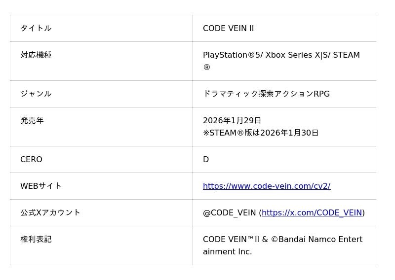 2026年1月29日(STEAM(R)版のみ1月30日)発売予定のドラマティック探索アクションRPG『CODE VEIN II』について新規映像であるストーリートレーラーを公開したことをお知らせいたします。