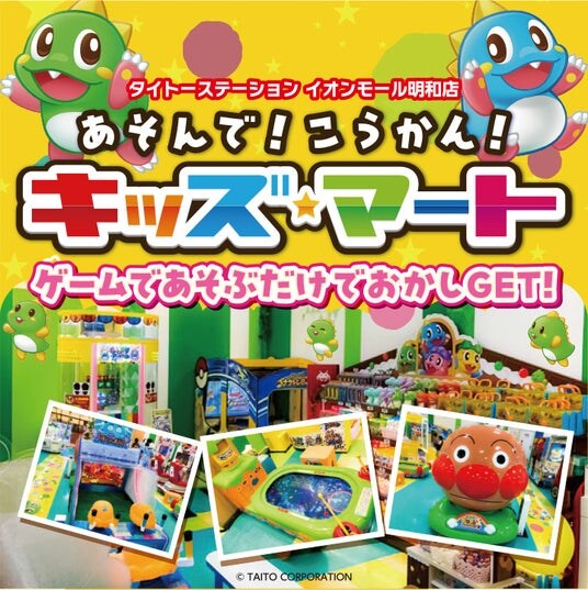 ゲームをプレイするともらえるチケットを集めて、お菓子と交換ができる、タイトーステーションのお子様向けコーナー「キッズマート」を新たにオープンいたしました。「キッズマート」は、見ているだけでワクワクするようなお菓子や楽しいゲームが揃う空間となっておりますので、是非、お子様と一緒にご来店ください。