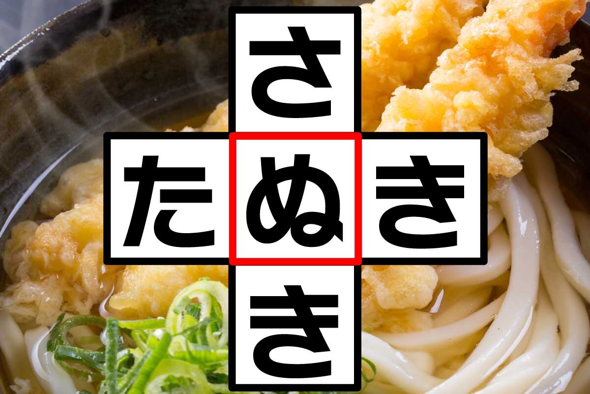 【問題】空欄に入るひらがなは? 【ヒント】タテ:香川県の旧国名。古い文献では「狭貫」と記されることもある。 ヨコ:山地や草原に穴居するいぬ科の獣。尾が太く、口がとがっている。昔話などでは、ばけて人をだまし、腹つづみを打つといわれる。