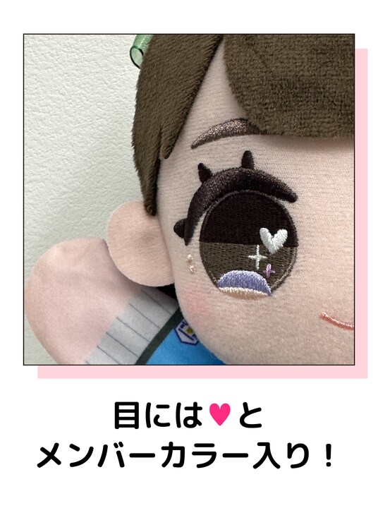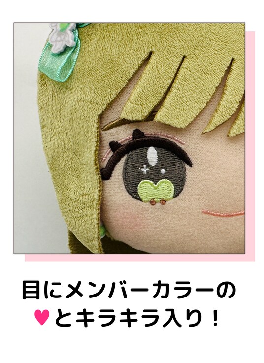 瞳にメンバーカラーの「(ハート)」(ハート)が入ったかわいらしいデザインです。