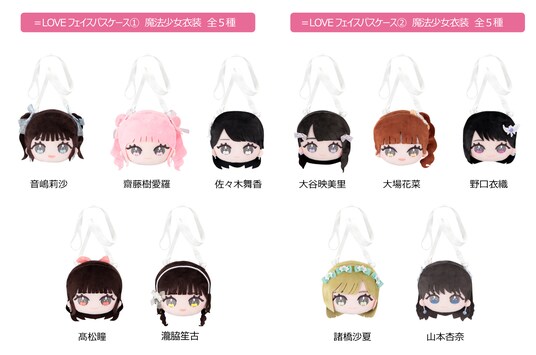 =LOVE 7周年コンサート「=LOVE 7th ANNIVERSARY PREMIUM CONCERT」、1stシングル『=LOVE』での衣装やヘアスタイル、髪色までこだわって完全再現した=LOVEメンバーのぬいぐるみ・パペット・フェイスパスケースで、大きな瞳にメンバーカラーと「(ハート)」(ハート)が入ったかわいらしいデザインです。お家に飾って写真を撮ったり、ライブ/イベントに連れて行ったり、=LOVEメンバーといつでも一緒のような気分になれる楽しい6アイテム全30種類を展開します。