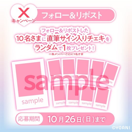 モーリーファンタジー公式Xでは、抽選で各10名さまに、=LOVEメンバーの直筆サイン入りチェキが当たるプレゼントキャンペーンを開催いたします。