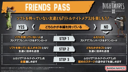 本作よりシリーズで初めてオンラインでのふたりプレイが可能となりました。本編を持っていない友達ともお楽しみいただける、フレンドパスの配信も開始しております。友達を誘って、ともに悪夢の世界を冒険しよう!