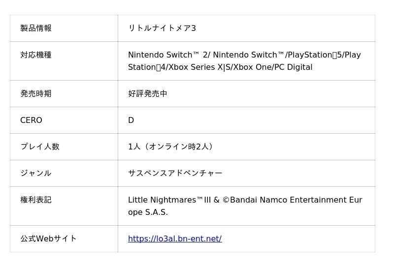 ■『リトルナイトメア3』公式サイトはこちら:https://lo3al.bn-ent.net/