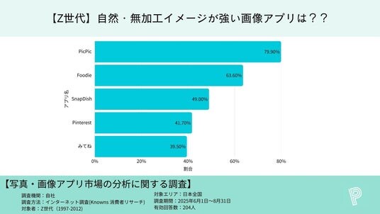 4.Z世代は「PicPic」79.9%で自然派トップ、Y世代は「Foodie」59.0%で首位 世代別アプリ印象調査