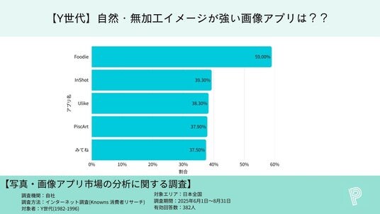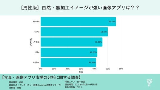調査の結果、世代によって「自然・無加工」イメージを持つアプリの傾向に違いが見られました。