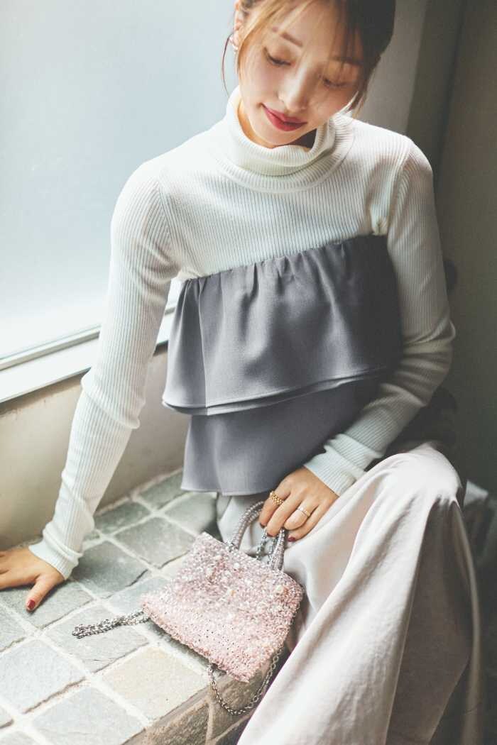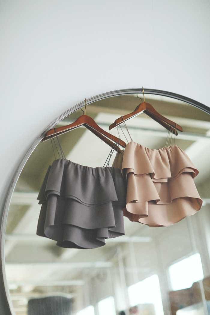 「ラッフルデザインビスチェ」(¥16,500税込)は、トレンドのビスチェを大人が楽しめるよう計算された一枚。