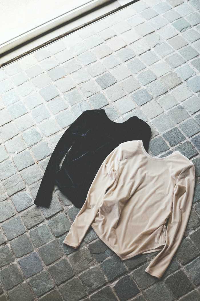 「ベロアカットソープルオーバー」(¥16,500税込)は、薄手のショルダーパッド入りでデコルテラインを美しく演出。