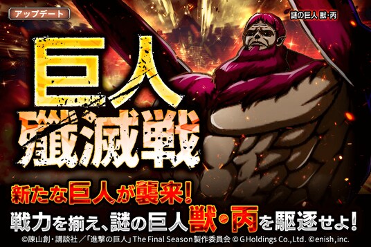 2025年10月10日(金)より、巨人殲滅戦に新たな巨人が襲来!戦力を揃え、「謎の巨人 獣・丙」を駆逐せよ!