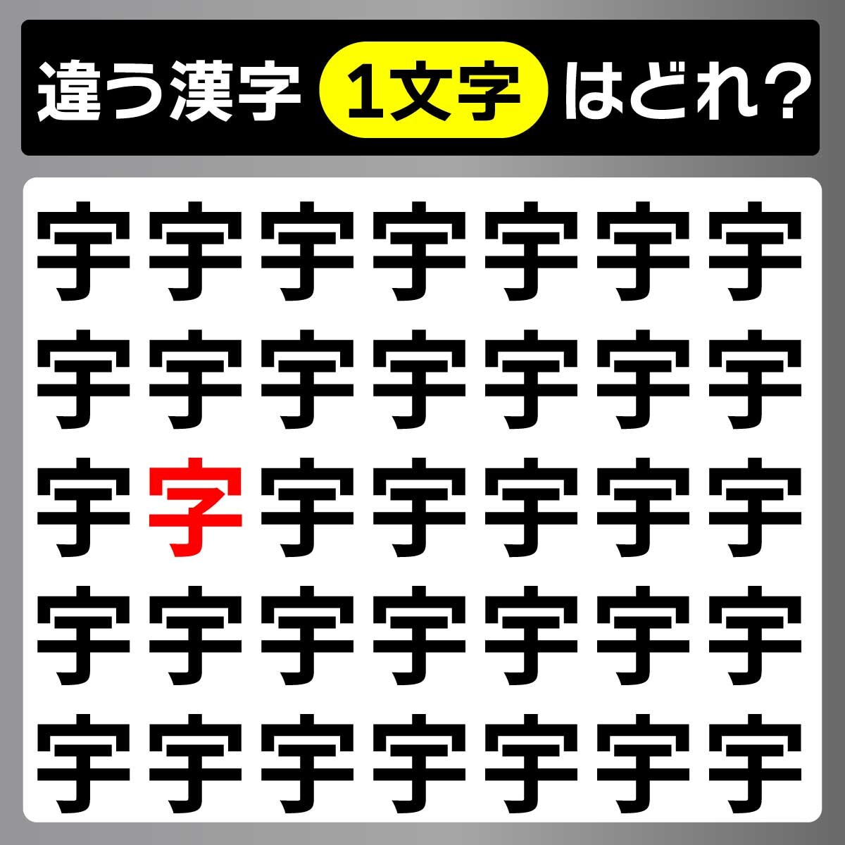 毎日配信中「毎日脳トレ」の時間です! 本日のクイズは「漢字のまちがい探し」に挑戦♪ 同じ漢字が並んでいるように見えますが、実は1つだけ違う漢字が……。よ~く探してみてください!