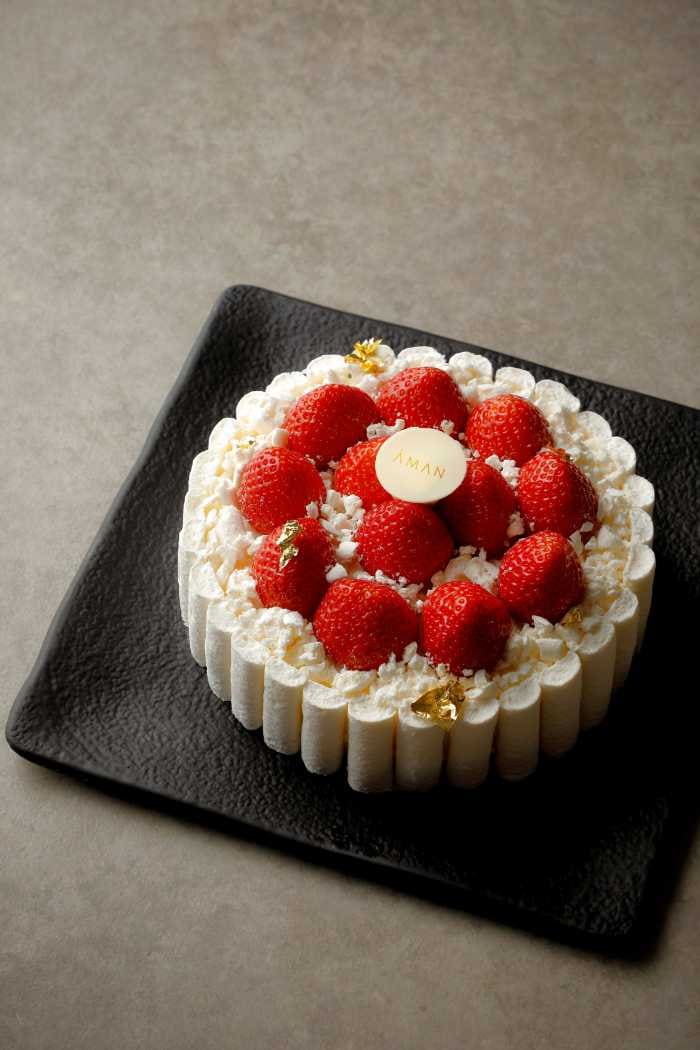 トップには大粒の国産苺を飾り、丸の内ハニープロジェクトのはちみつを使用したメレンゲは、口に含むとふわりと溶け、優しい甘さが広がります♡
