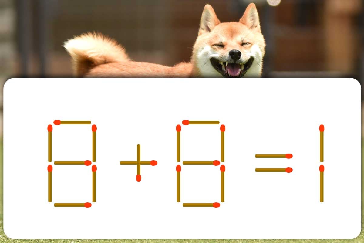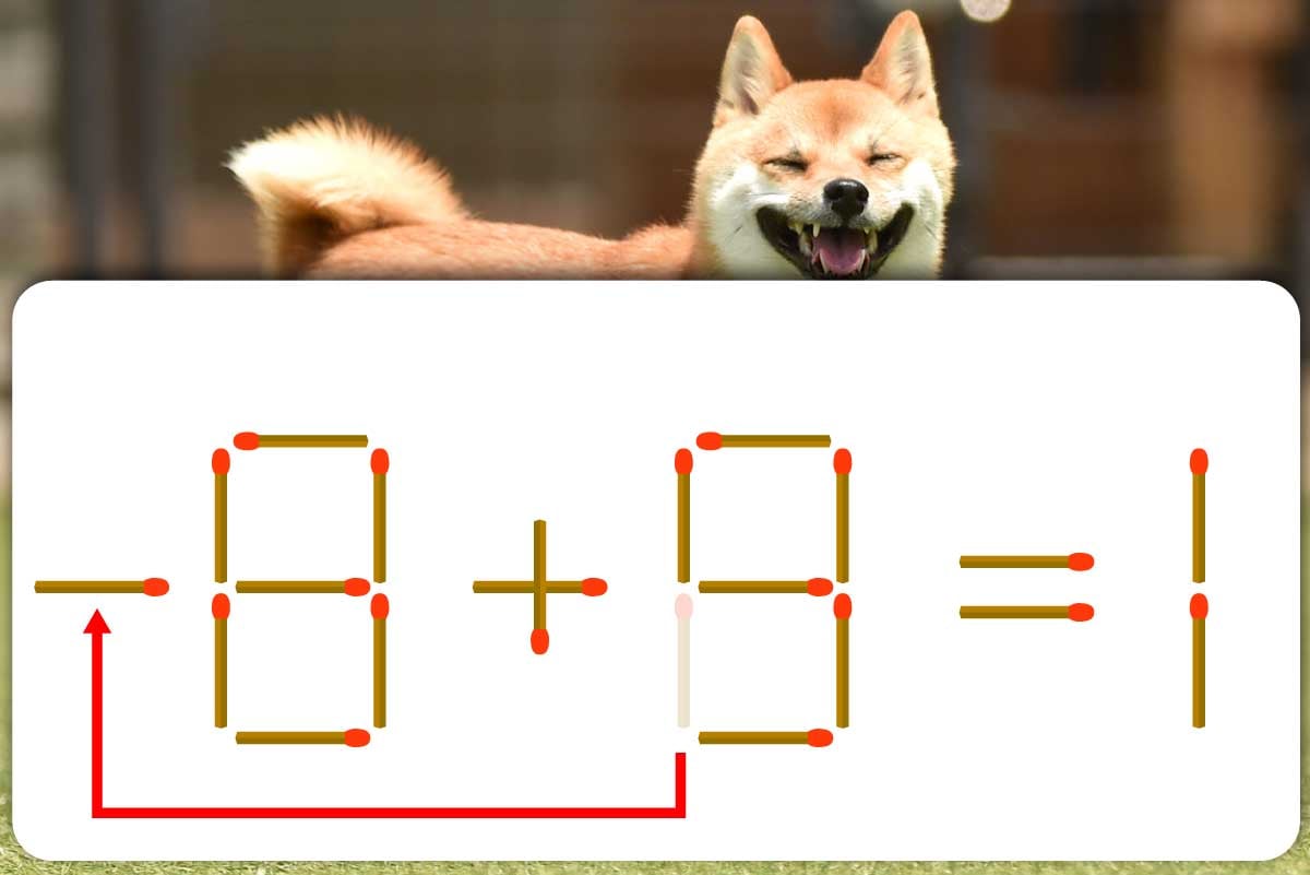 式の右側にある「8」から、左下にある縦向きのマッチ棒を取り、数字を「9」にしましょう。抜き取ったマッチを横に90度回転。そして左にある「8」の左にマッチ棒を足すことで「-8」へと早変わり!これにより「-8+9=1」になるため、見事式が成立します。